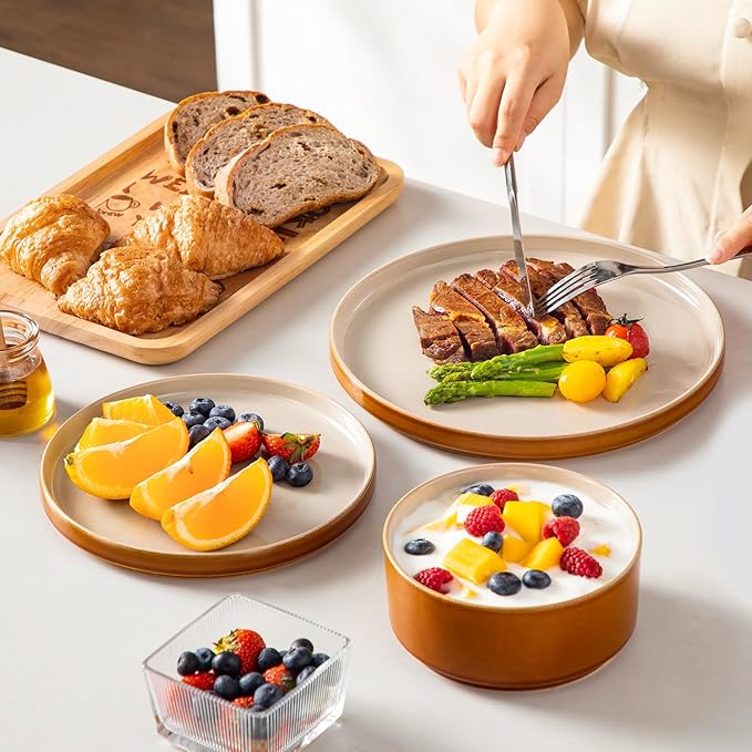 - 【Plate and Bowl Set for 8】 Includes 8 dinner plates (10"), 8 salad plates (8"), and 8 bowls (24oz), perfect for serving everyday meals or special occasions.