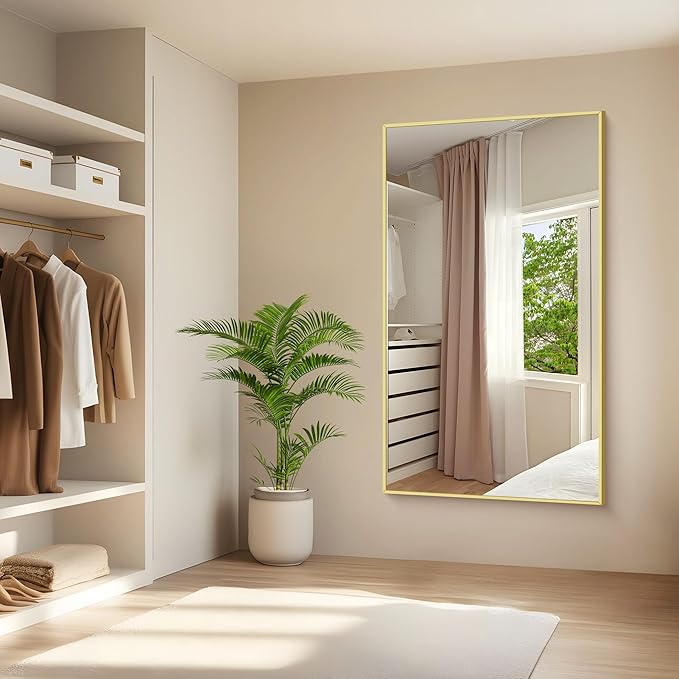 - Exceptional Quality:KOCUUY gold wall mirror is made of HD 3mm premium glass, shatterproof, bright and anti-distortion, which provides perfect reflection. Durable Aluminum alloy frame would strengthen the floating glass for safety, waterproof and anti-corrosion in wet bathroom environments.