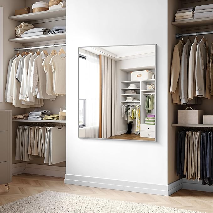 - Modern Design:KOCUUY 40"x48" silver vanity mirror is with innovative design which gives the wall mirror a more fashion feel. With a classic square corner, the wall mounted mirror allows for creativity and functionality in bathroom, bedroom, entryway and anywhere else. Let your living space be an expression of your personal style, not limited to modern or contemporary, farmhouse or industrial.