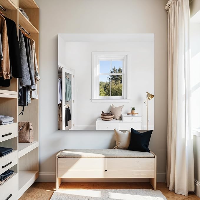 KOCUUY Large Frameless Mirror,42x42 Inch Square Bathroom Vanity Mirror for Over Sink, Upgraded Shatterproof Unframed Design for Bedroom, Living Room, Entryway