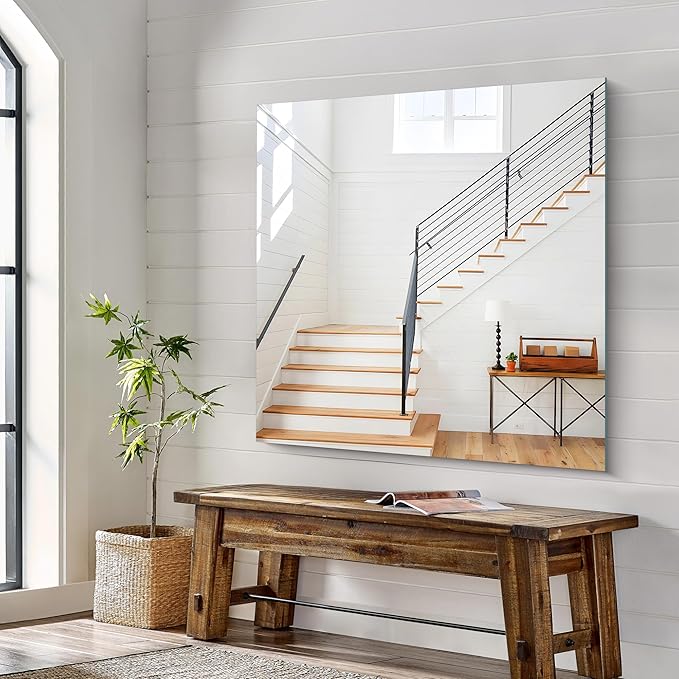 - HD 1:1 Reflection:KOCUUY frameless wall mirror offers a high-definition reflection. The premium mirror backing ensures a 1:1 real reflection with no distortion, giving you an clear and bright visual experience. This unframed mirrors are not only rust-resistant but also promise durability, making them ideal for high-humidity bathroom conditions