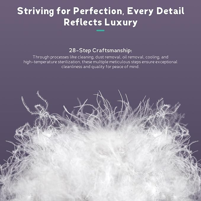 - Premium Sleep Essential - The goose down pillow is the crown jewel of our collection. The down, sourced with care, provides a perfect balance of softness and support, making them an ideal choice for all sleepers, Available in queen, standard, and king sizes, these pillows are designed to fit seamlessly into any bedding setup, ensuring a comfortable and restful night's sleep