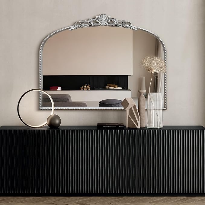 Micasso Silver Vintage Wall Mirror: 24"x 32" French Baroque Antique Arched Wall Mounted Mirror - Traditional Ornate Decorative Entryway Mirror for Home Decor/Entryway/Fireplace/Living Room/Hallway