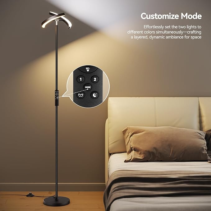 - Customize Lighting Mode & Wide Application: Effortlessly set one light to 3000K warm white and another to 6000K cool white simultaneously. This unique blend creates a layered, dynamic atmosphere for spaces. This standing lamp works perfectly as a reading lamp, torchiere lamp, corner lamp, lamps for living room, lamp for bedroom, or office lamp.