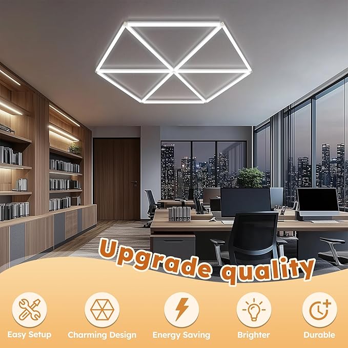 - 【Ultra-Bright Lighting】Experience crystal-clear 5940LM illumination with these LED hexagonal lights. The 6500K white light enhances visibility for automotive repairs, woodworking, and other precision tasks in garages or workshops.