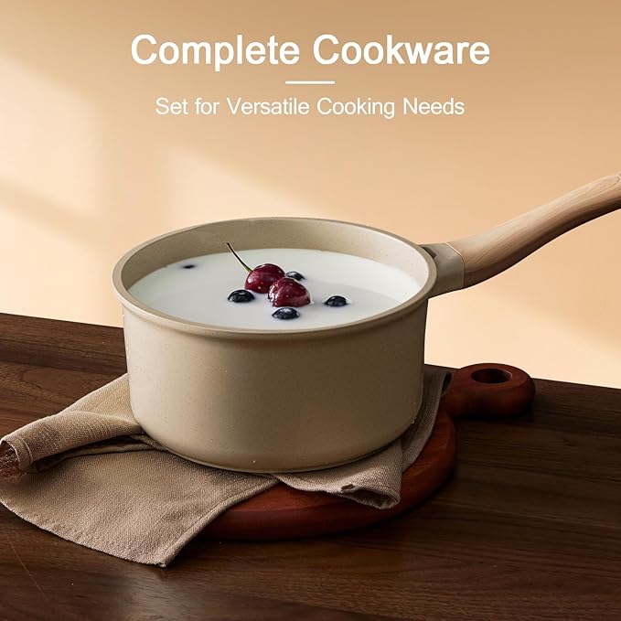 - 【Ti-Ceramic Coating Ultra Non-Stick & Non-Toxic】Engineered with a next-generation ceramic coating enhanced by titanium powder, this non toxic cookware set offers long-lasting nonstick performance and superior scratch resistance. 100% free from PFAS and other harmful chemicals—cook healthy with confidence.