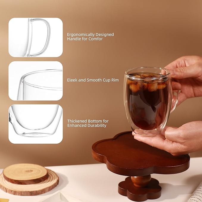 - Double-Walled Cup Design: Glass coffee cups are double-walled and have an excellent thermal insulation effect, which helps keep drinks cold or hot longer.