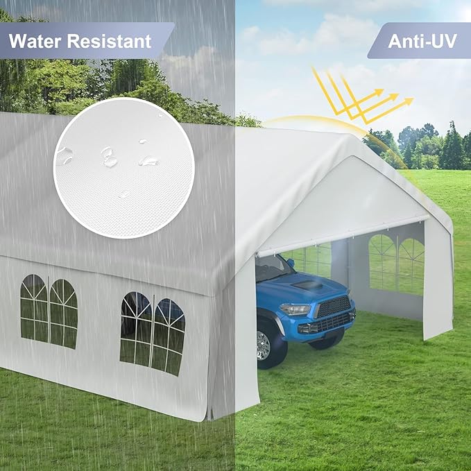 - Two Fixing Methods: High strength 42mm metal joint fittings,Includes 2 ways anchoring kit (for both soft and hard ground) to keep metal carport rooted
