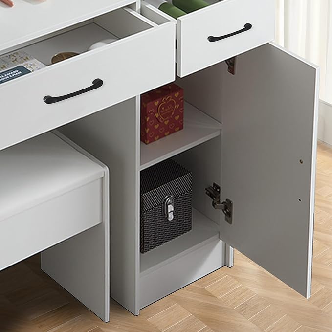 - 【 Sturdy & Durable Vanity】Crafted from premium engineered wood with extra-thick, smooth, and odor-free panels, this makeup vanity desk is designed for superior durability and long-term performance. The reinforced structure provides enhanced stability and safety, ensuring a reliable beauty station you can enjoy for years to come.