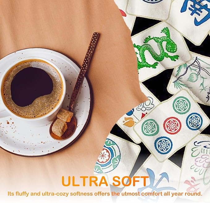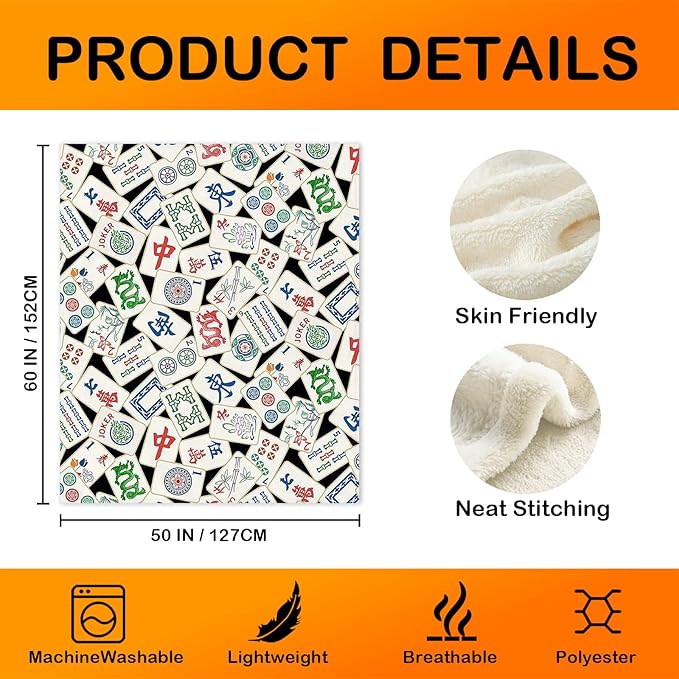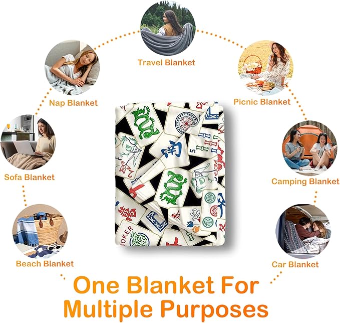 Mahjong Lover Gifts Throw Blanket for Women Men,Chinese Mahjong Blanket for Office Couch Bed Girls Dorm Bedroom Living Room,50x60 Inches