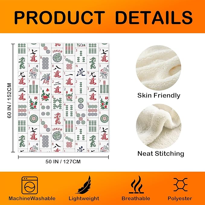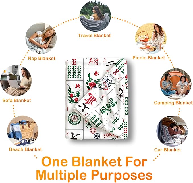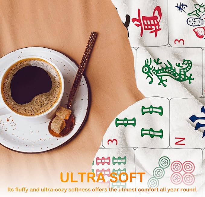 Mahjong Gifts Throw Blanket,Gifts for Women Gilrs Mah Jong Players Lovers,Mahjong Blanket for Office Couch Bed Girls Dorm Bedroom Living Room,50x60 Inches