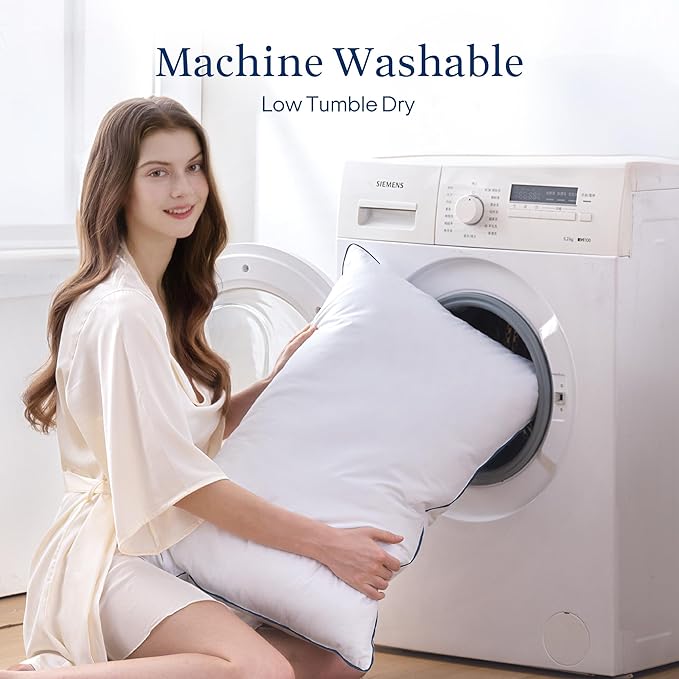 - Easy Care: The soft pillows for sleeping can be washed directly in the washer or dryer, saving you more time and energy. Please wash it at low temperature, then tumble dry it at low temperature or dry it naturally. Before using, remember to pat it easily to quickly restore the fluffiness, and it is always as good as new even after repeated washing.