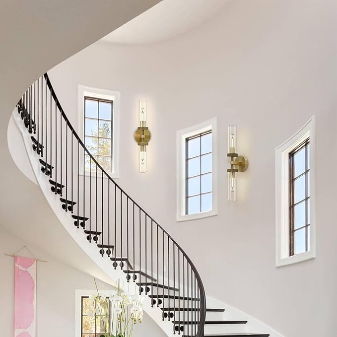 - HORIZONTAL & VERTICAL WALL SCONCE: The Gold Bathroom Sconce offers a 360° bulb illumination range. Install the Gold Vanity Light horizontally above the mirror or vertically to the left or right for a perfect fit in your bathroom.The Brass Linear Sconce is also perfect for living room, dresser, vanity, mirror cabinet, doorway, entrance, hallway, foyer, staircase, or bar cafe.