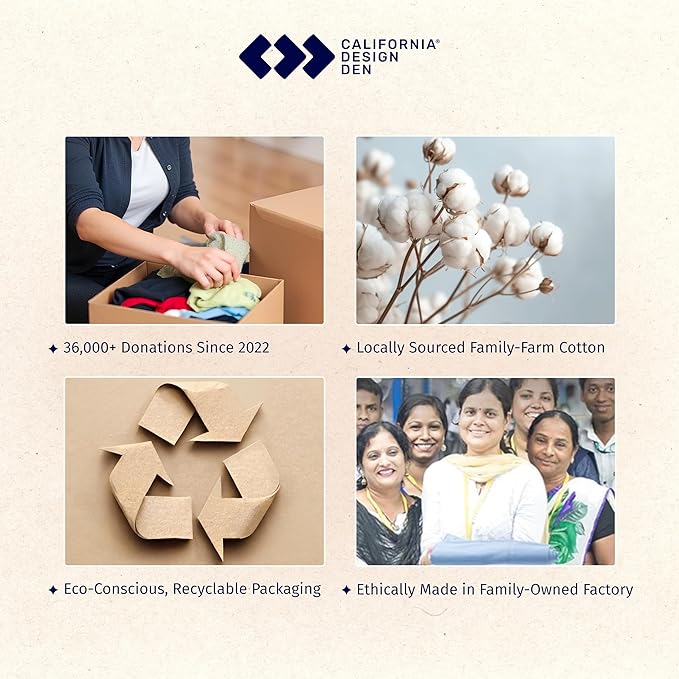 - Our Commitment: We prioritize comfort, community, and sustainability. Since 2022, we've donated over 36,000 bedding items to US charities and removed plastic from our packaging. Sheets are crafted in our family‑owned factory in India with care and quality‑checked—thread count may vary by ±5% due to standard manufacturing limits. Enjoy affordable luxury and hassle‑free returns for a better night’s sleep.