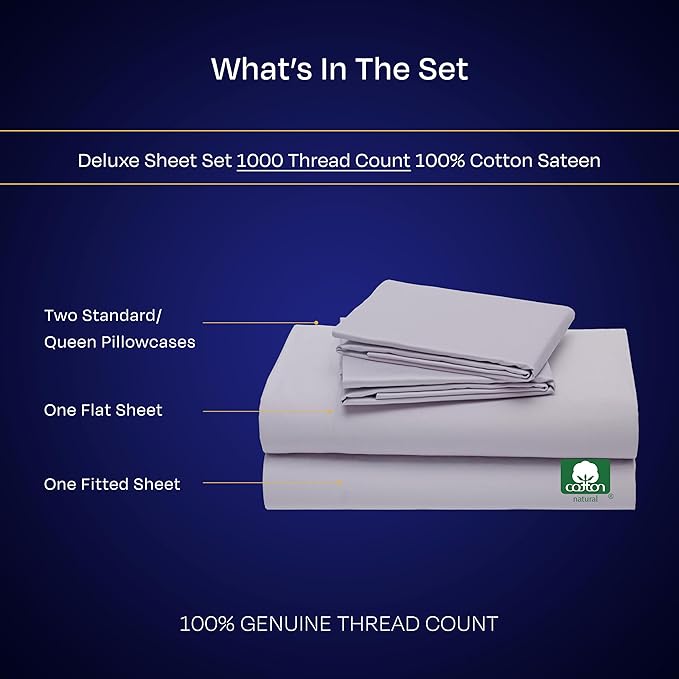 - Architectural Digest Best Sheet Category Winner 2024: These luxuriously soft and substantially thick 100% cotton sateen bed sheets queen size, crafted from 1000 thread count in a sateen weave, deliver a smooth feel and cool breathability of high-end hotel bedding. With a dense weave that softens beautifully after washes, they’re perfect for those who prefer a rich, heavier sheet rather than something lightweight. These high thread count sheets are perfect for uninterrupted sleep all year round.