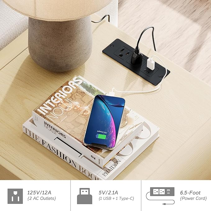 - NIGHTSTANDS WITH CHARGING STATION: The 2-drawer nightstands feature built-in charging hubs with 1 USB, 1 Type-C, and 2 AC outlets, making it easy to power your phone, tablet, or nightlight without clutter. Great for anyone seeking a functional dresser nightstand set with modern convenience.