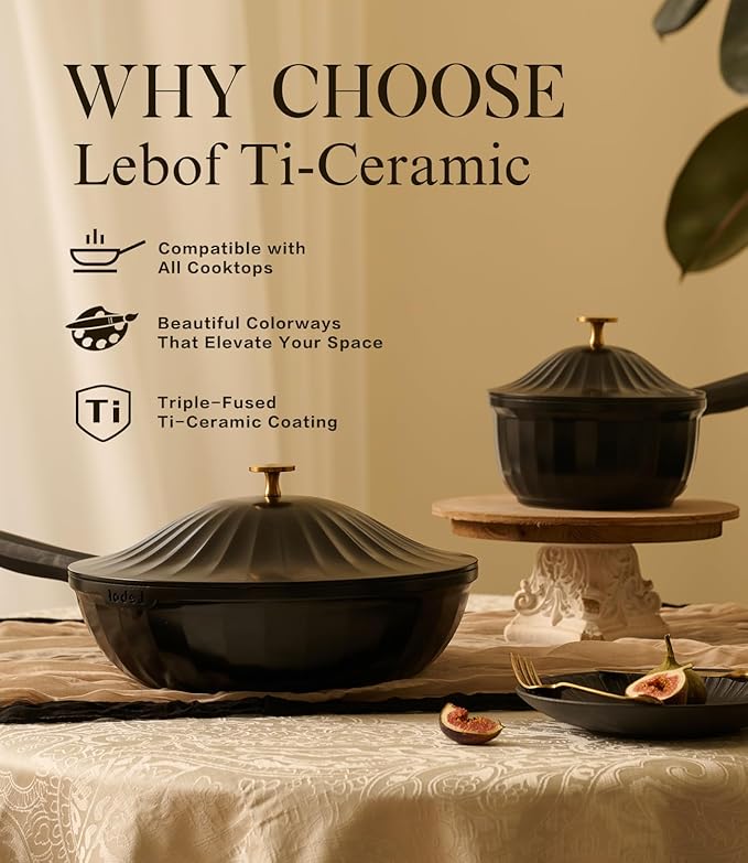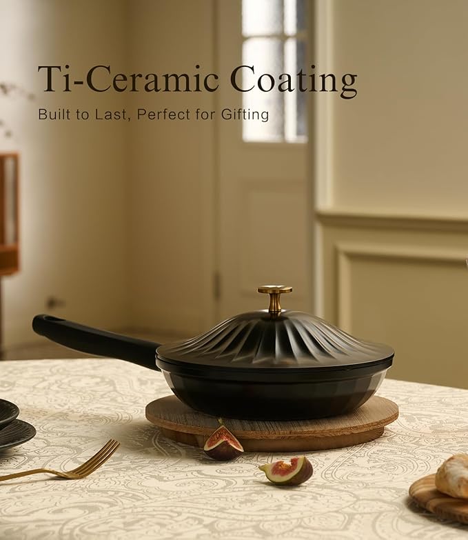 - Non Toxic Triple-Fused Ti-Ceramic Coating: Infused with titanium particles, the ceramic coating enhances durability with superior resistance to scratches, abrasion, heat, and corrosion. It extends the nonstick performance, improves chemical stability, and ensures safer, healthier cooking with every use
