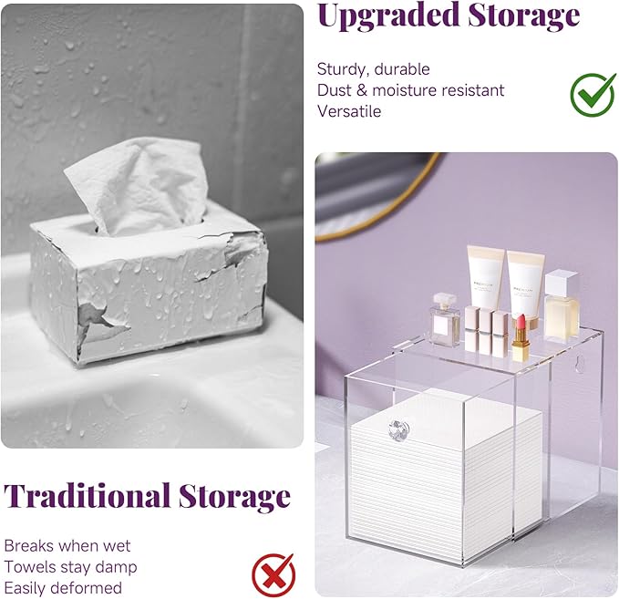 - Fits Various Towel Sizes:This acrylic organizer, meticulously sized at 6.69"L × 5.9"W × 7.09"H, features well-proportioned spacing for effortless storage. It securely holds everything from Clean Skin Club's oversized facial cleansing towels to other disposable varieties—no wobbling or falling. Perfect for meeting diverse towel storage needs, especially for clean towels xl