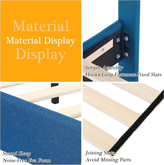- Special Feature : Fade Resistant, No Box Spring Needed, Slatted, Squeak Resistant, Upholstered
