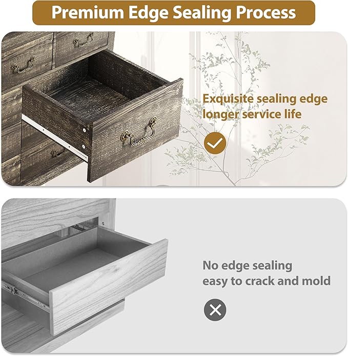 - 【Ample Storage Space】This 9 drawer dressers for bedroom features 9 spacious and deep drawers, providing ample storage for clothes and miscellaneous items. Its generous design enhances organization and elegance in any setting, whether in a spacious living room, a cozy bedroom, or a narrow hallway. The 9 dresser organizer is the perfect addition to keep your home or office stylish and clutter-free!