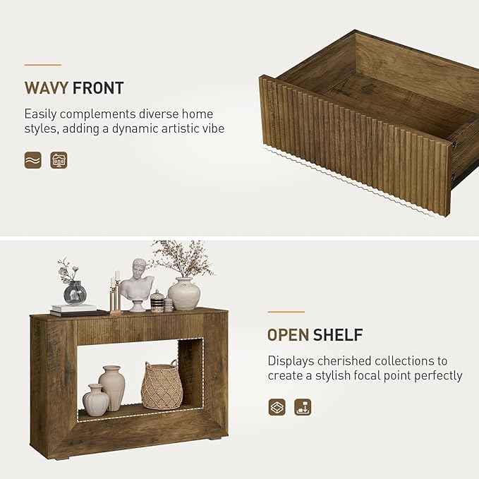 Farmhouse Console Table, 47 Inches Wooden Entryway Table with Storage, Fluted Sofa Table with 2 Handle-Less Drawers, for Entryway, Living Room, Foyer, Hallway, Dark Brown