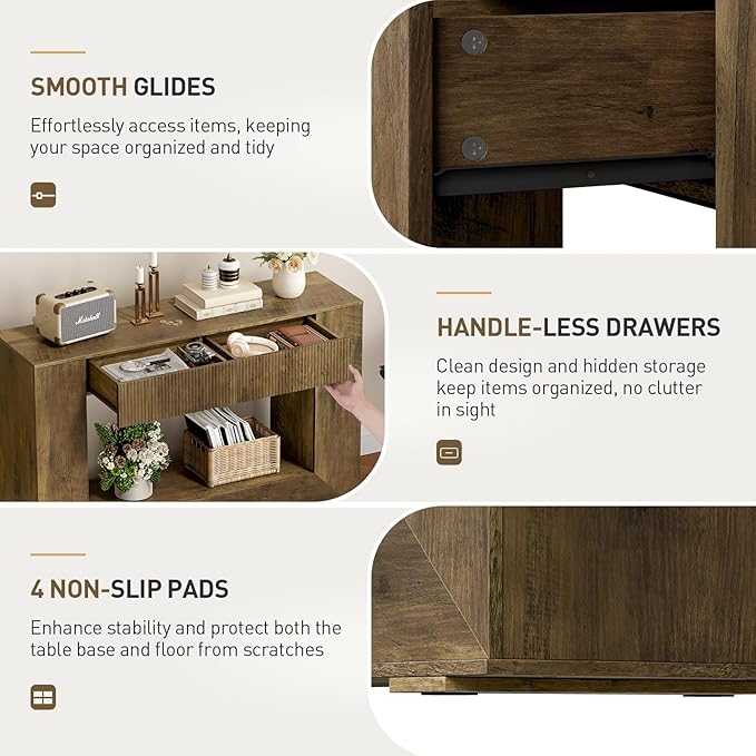 - Abundant Storage: The entryway table features 2 handle-less drawers for concealing small items such as keys and earphones. The open top and bottom shelf can display potted plants, vases, or store baskets and books, keeping everything organized and tidy