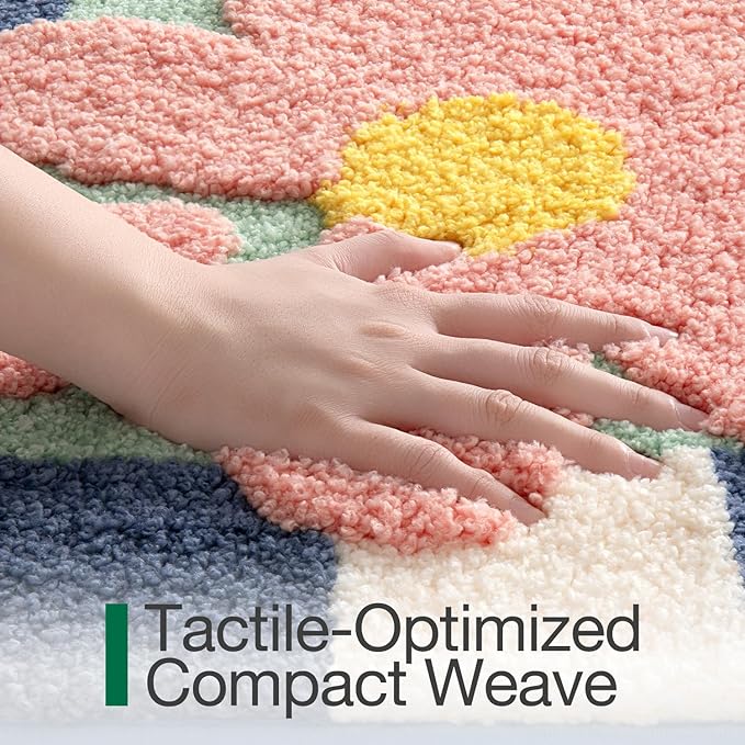 - 🌼Stylish Design: Features a trendy checkerboard pattern with a playful flower motif. The bold yet refreshing color combination brightens up your bathroom and adds a touch of personality. This mat also works well in bedrooms, living rooms, entryways, or kitchens, adding both comfort and charm to any space