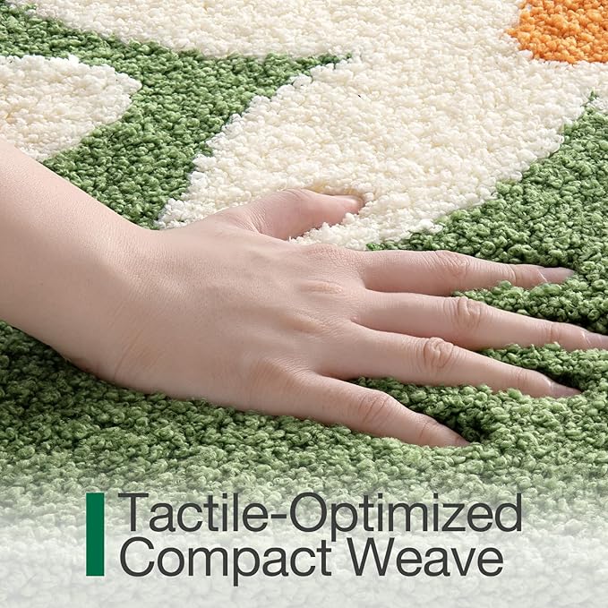 - 🌼Unique Daisy Design: Fresh green background with white daisy flowers brings a natural, cozy, and vibrant touch to your bathroom décor, combining practicality with style. Perfect for bathroom, sink area, bedroom, balcony, this multi-functional rug adds warmth, comfort, and decorative charm to any space.