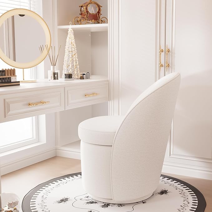 - Smooth 360° Swivel & Ergonomic Backrest: Features a reinforced rotating base for effortless movement and a curved backrest that supports natural posture. Perfectly aligns with vanities, desks, or dining tables.