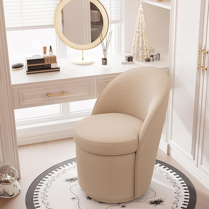 - Smooth 360° Swivel & Ergonomic Backrest: Features a reinforced rotating base for effortless movement and a curved backrest that supports natural posture. Perfectly aligns with vanities, desks, or dining tables.