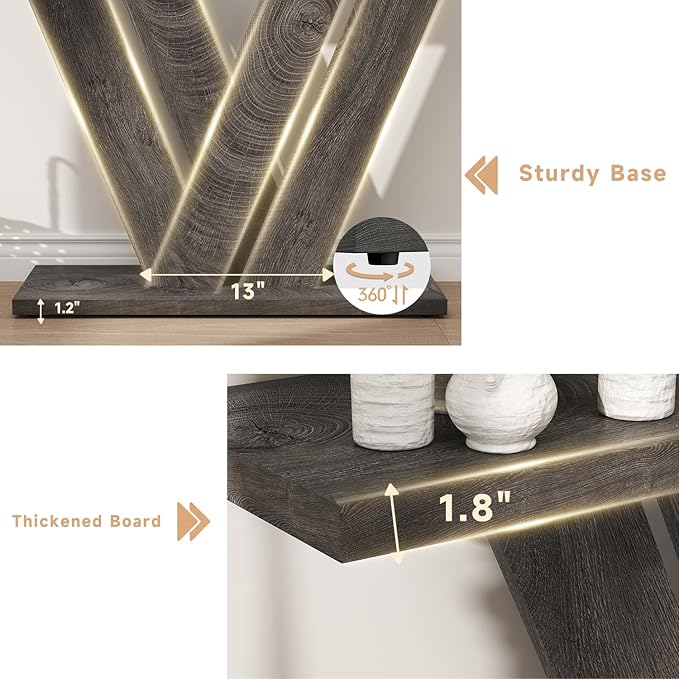 - Solid Construction and Stability: Crafted with a sturdy, tasteful V-shaped design, our entrance table balances beauty with robust support. Its heavy base enhances stability, ensuring the entry way table remains steady even when supporting heavy objects. The dimensions (51.2″ L x 12.6″ W x 31.5″ H) are suitable for various spaces, allowing you to confidently display your favorite items