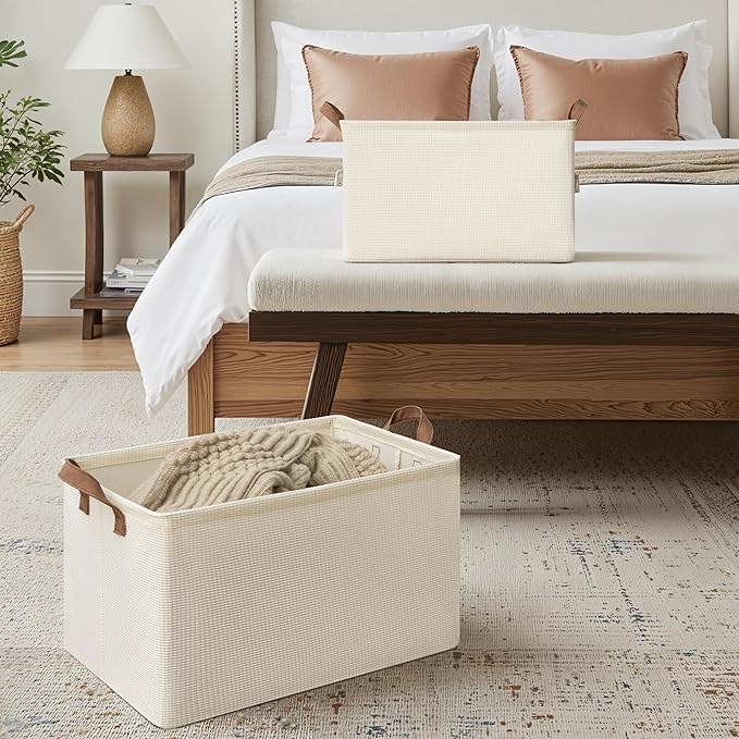 - Handle with Ease: With the 2 PU handles securely riveted to the sides of the storage bin, you can easily carry items without tearing the handles.