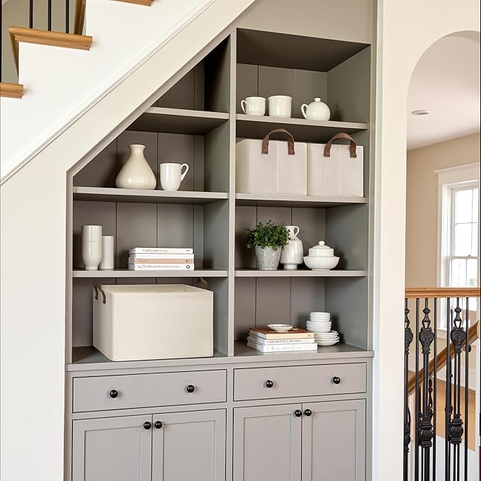 - Use Across Scenario: These shelf storage bins are sturdy enough to be used as clothing containers, helping you effectively organize your bedroom, living room, laundry room, or dorm room with simple and elegant color blocking designs to make your room tidier and prettier.