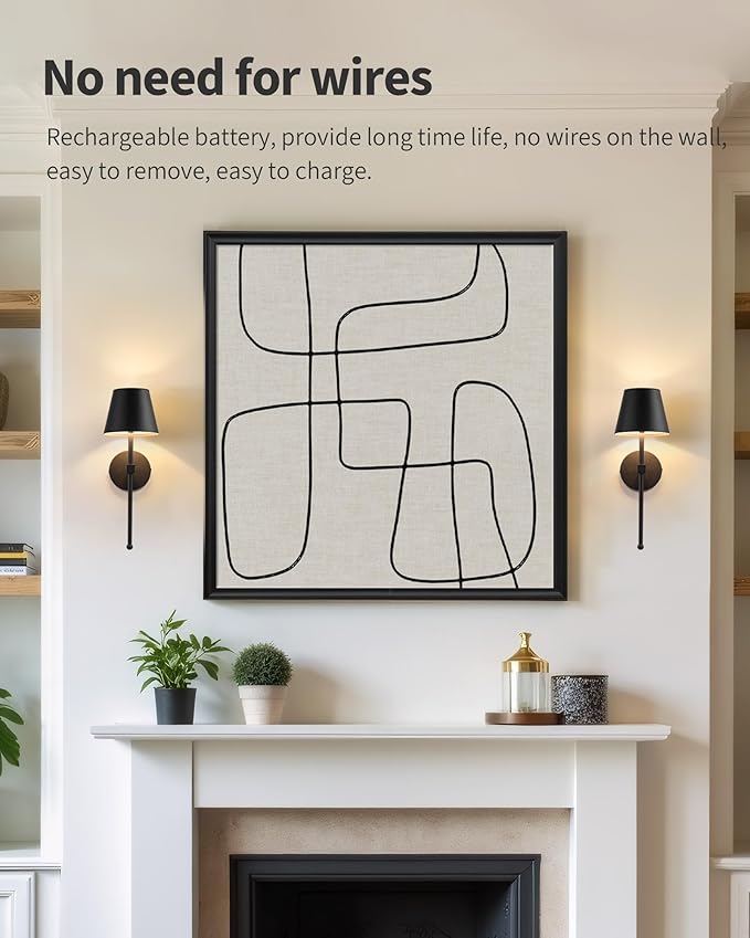 KDG Cordless Wall Sconces Set of 2, Wireless 5200mAh Rechargeable Battery LED Wall Lamps, Wall Lightings for Wall Painting, Outdoor, Garden, Living Room, Bedside, Hallway, Gifts, Night Light (Black)