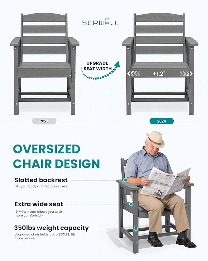 - 【All Weather Use】SERWALL patio dining sets are built to withstand the elements and provide long-lasting performance. The sturdy frames and high-density polyethylene materials ensure durability and reliability, allowing you to enjoy outdoor dining for years to come.