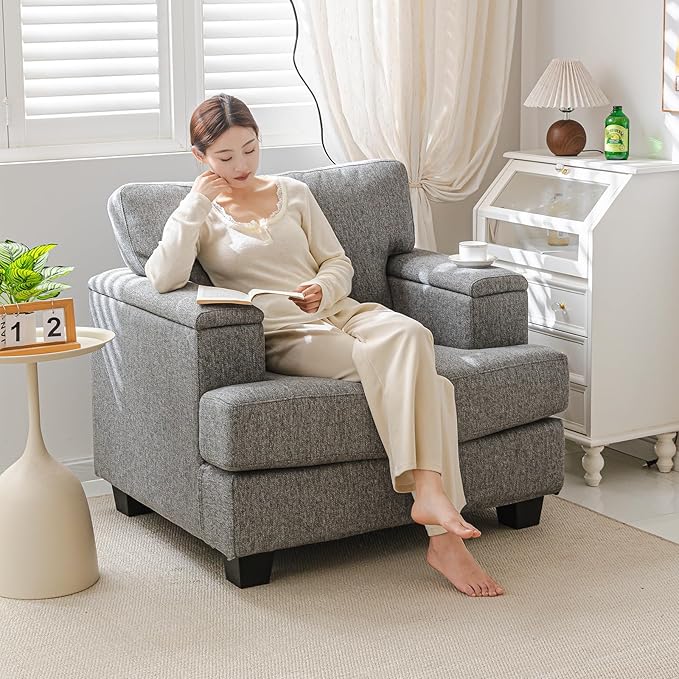 Oversized Accent Chair with Armrest Storage,38”W Big Armchair with 7.8'' Thick Cushion,Deep Seat,Large Comfy Reading Chair, Living Room Chairs,Sofa Chair for Bedroom,Chenille,Dark Gray