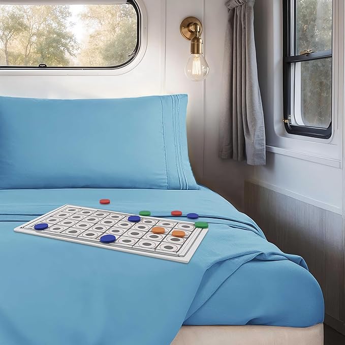 Clara Clark Bed Sheets, Premier 1800 Series 4 Piece RV Queen Sheet Set, Luxury Soft Sheets for RV Bunks, Short Queen - Calm Blue