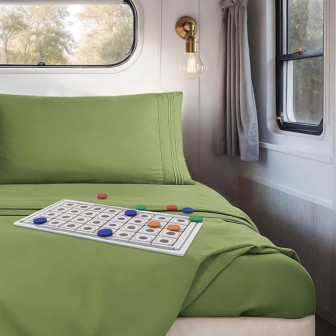 Clara Clark Bed Sheets, Premier 1800 Series 4 Piece RV Queen Sheet Set, Luxury Soft Sheets for RV Bunks, Short Queen - Calla Green