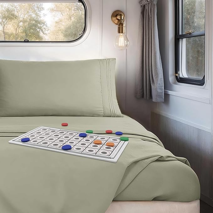 Clara Clark Bed Sheets, Premier 1800 Series 4 Piece RV Queen Sheet Set, Luxury Soft Sheets for RV Bunks, Short Queen - Sage Green