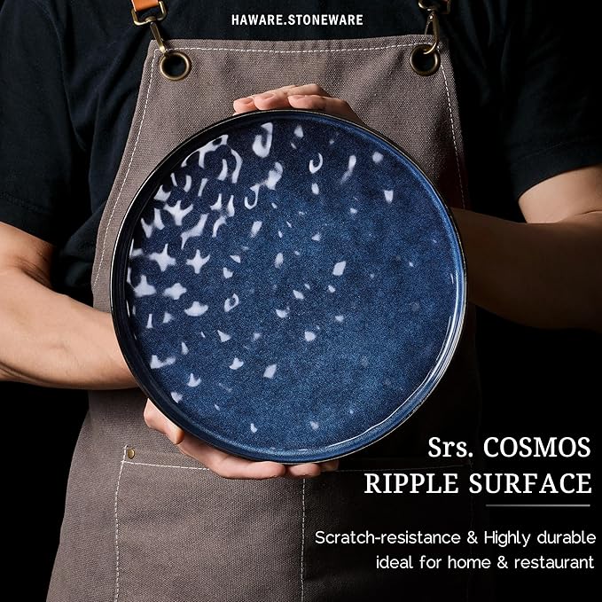 - 【UNIQUE RIPPLE SURFACE】 The glaze with its special ripples, mimics the appearance of planets in the cosmos, Serving meals on these pieces, will make them look more refined, Minimalist design let our dinnerware seamlessly integrates into most kitchens and dining tables, also pairs well with different styles of silverware, Smooth surface and rounded shape ensure safe handling, The fire - made glaze is highly scratch - resistant, so you don't have to worry about marks from forks or knives