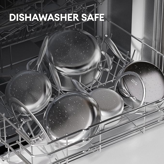 - 【Effortless Cleaning】: Discover the convenience of our dishwasher-safe stainless steel cookware set. These non stick frying pans and skillets make cleaning quick and easy.