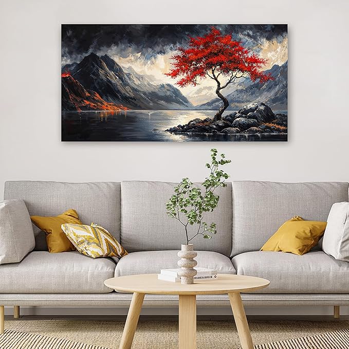 Canvas Wall Art Decor Wall Art Decorations for Living Room Black and White Vintage Wall Art Nature Landscape Wall Art Prints Art Work for Wall Decor Red Artwork for Walls Home Office Decor 20" X 40"