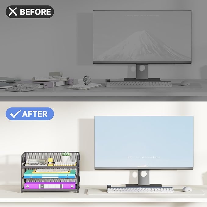 - 【STYLISH OFFICE SUPPLIES】This paper tray is available in multiple colors to match different office styles. Not only the desk organizer tray save space for your workspace, but its stylish design makes your office look more professional.