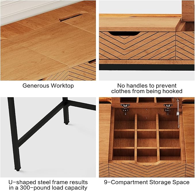 - [Storage & Organization]: Equipped with 2 drawers, 9-compartment storage unit and a dedicated cable management system, this desk keeps makeup, stationery, and tech accessories neatly organized. Ideal for busy families or teens.