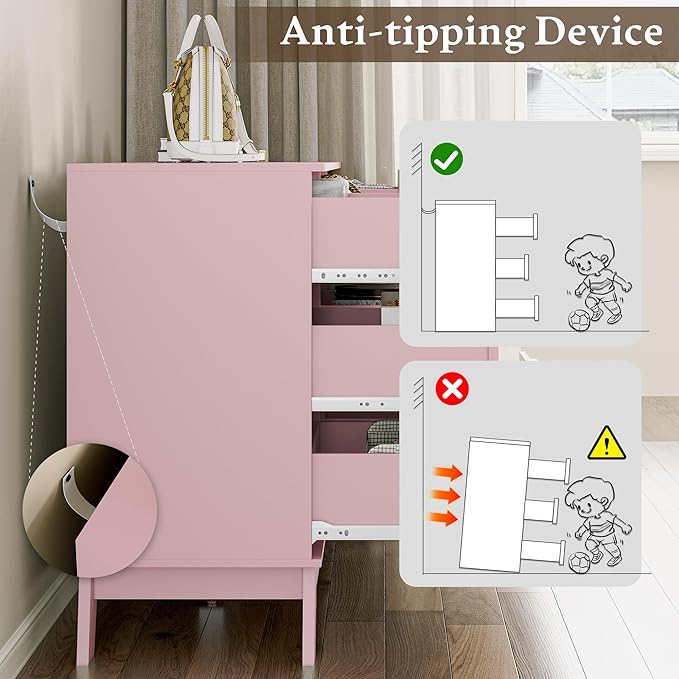 - 【PERFORMANCE UPGRATE】Sturdy wood dresser legs structure ensures stability and support for daily use, that always keep it stable on uneven floors. And the anti-tipping device can protect your family from tipping related injuries. Besides, bedroom dresser is equipped with sliding rail smooth-gliding and independent, you can push in and pull out drawers easily and quietly.