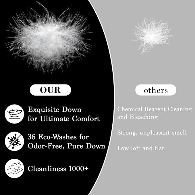 - 【LUXURIOUS 5-STAR HOTEL FEEL】These soft support and medium firm down pillows are meticulously crafted to offer a sleep experience that rivals a 5-star hotel, making them the best hotel pillows. Whether you sleep on your back, side, or stomach, they provide an ideal sleeping position. Bring this sense of luxury home and indulge in the unique charm of high-quality goose down pillows