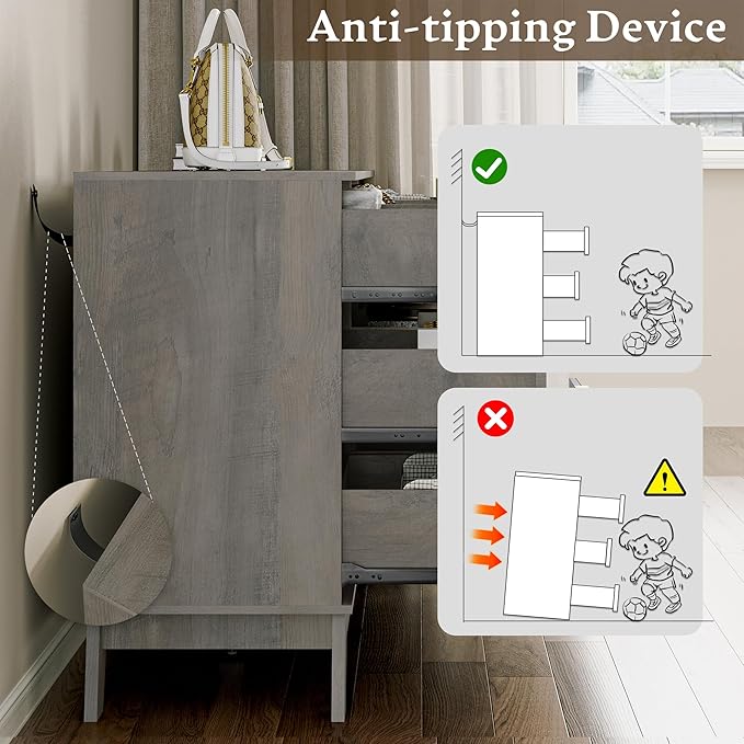 - 【PERFORMANCE UPGRATE】Sturdy wood dresser legs structure ensures stability and support for daily use, that always keep it stable on uneven floors. And the anti-tipping device can protect your family from tipping related injuries. Besides, bedroom dresser is equipped with sliding rail smooth-gliding and independent, you can push in and pull out drawers easily and quietly.