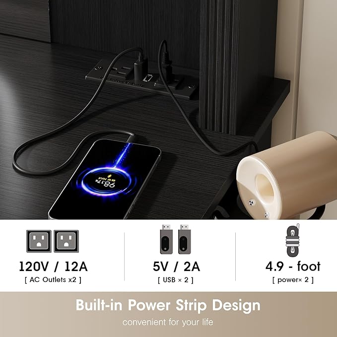 - Comprehensive Upgrade to Your Beauty Routine: This vanity table innovatively integrates a high-definition LED mirror with three-stage adjustable lighting and features a charging area and hairdryer holder, making your beauty regimen more convenient and efficient than ever. Whether it's morning skincare or evening makeup removal, enjoy a one-stop service experience