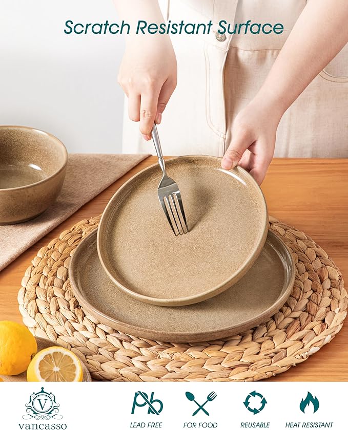 - 【Durable & Scratch-Resistant Stoneware】Made from high-fired stoneware, this set is strong, chip-resistant, and built to last. It resists wear and tear from daily use while maintaining its elegant appearance over time.