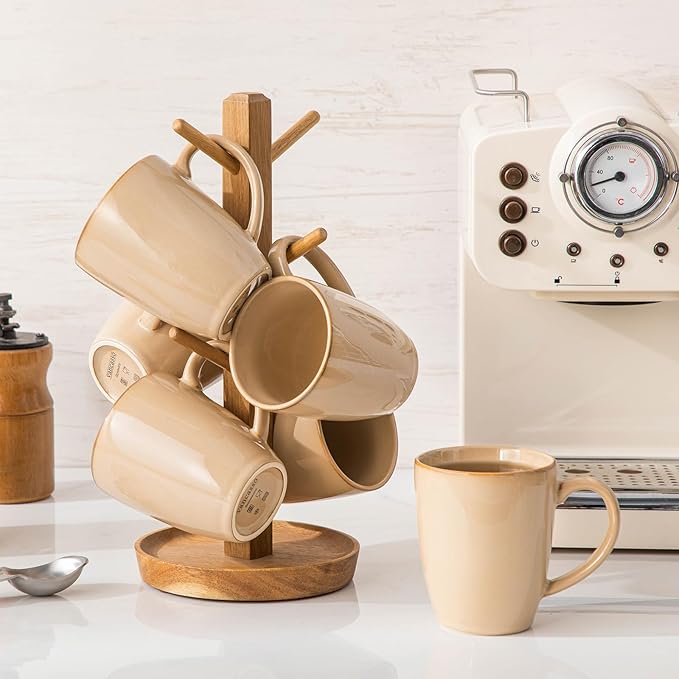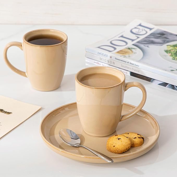 vancasso PLAYA Ceramic Coffee Mug Set of 6, 12 Oz Tea Cups with Handle for Latte, Tea, Cappuccino, Milk, Cocoa, Microwave&Dishwasher Safe, Brown